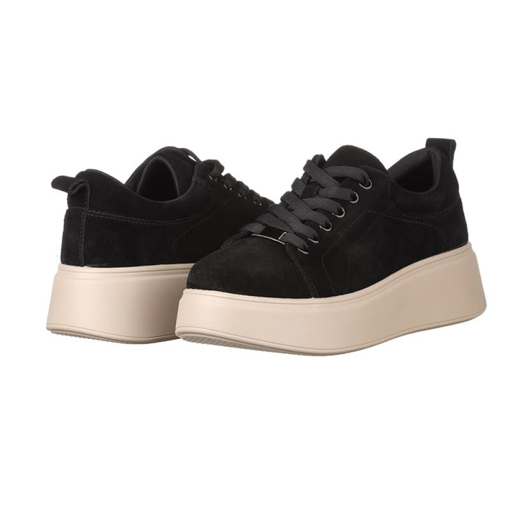 Эти женские кроссовки – идеальное сочетание модного вида и ежедневного комфорта. Верх модели выполнен из замшевого черного материала, который выглядит стильно и аккуратно, обеспечивая мягкое прилегание к ноге. Классическая шнуровка позволяет регулировать посадку, а петля сзади облегчает процесс обувания.